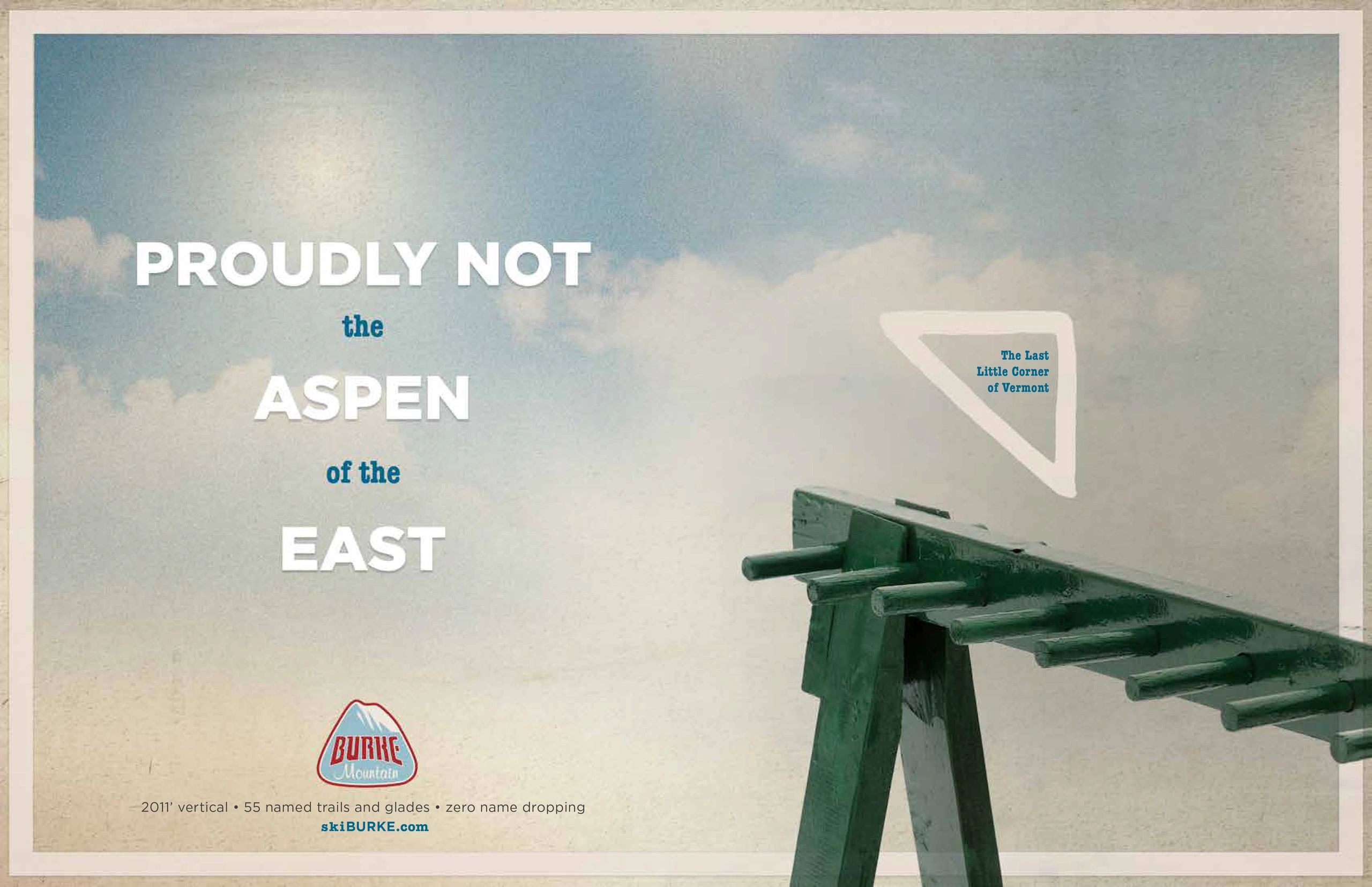 Burke Mountain in northern Vermont isn’t as big as a lot of its competitors. Its location in the northeast corner of the state makes people believe is further away. A slate of failed ownerships with big plans and little else had left the mountain behind in the amenity arms race of the ‘90s and early 2000s. And today, as other mountains are gobbled up by conglomerates, it is left off the combo passes that are changing the ski landscape. A bumper crop of negatives we spun into a positive as the last place to experience the true Vermont ski experience that made the state so great to begin with. So instead of offering people more of the same, we offered them a little slice of what was and positioned Burke as the “Last Little Corner of Vermont”.
